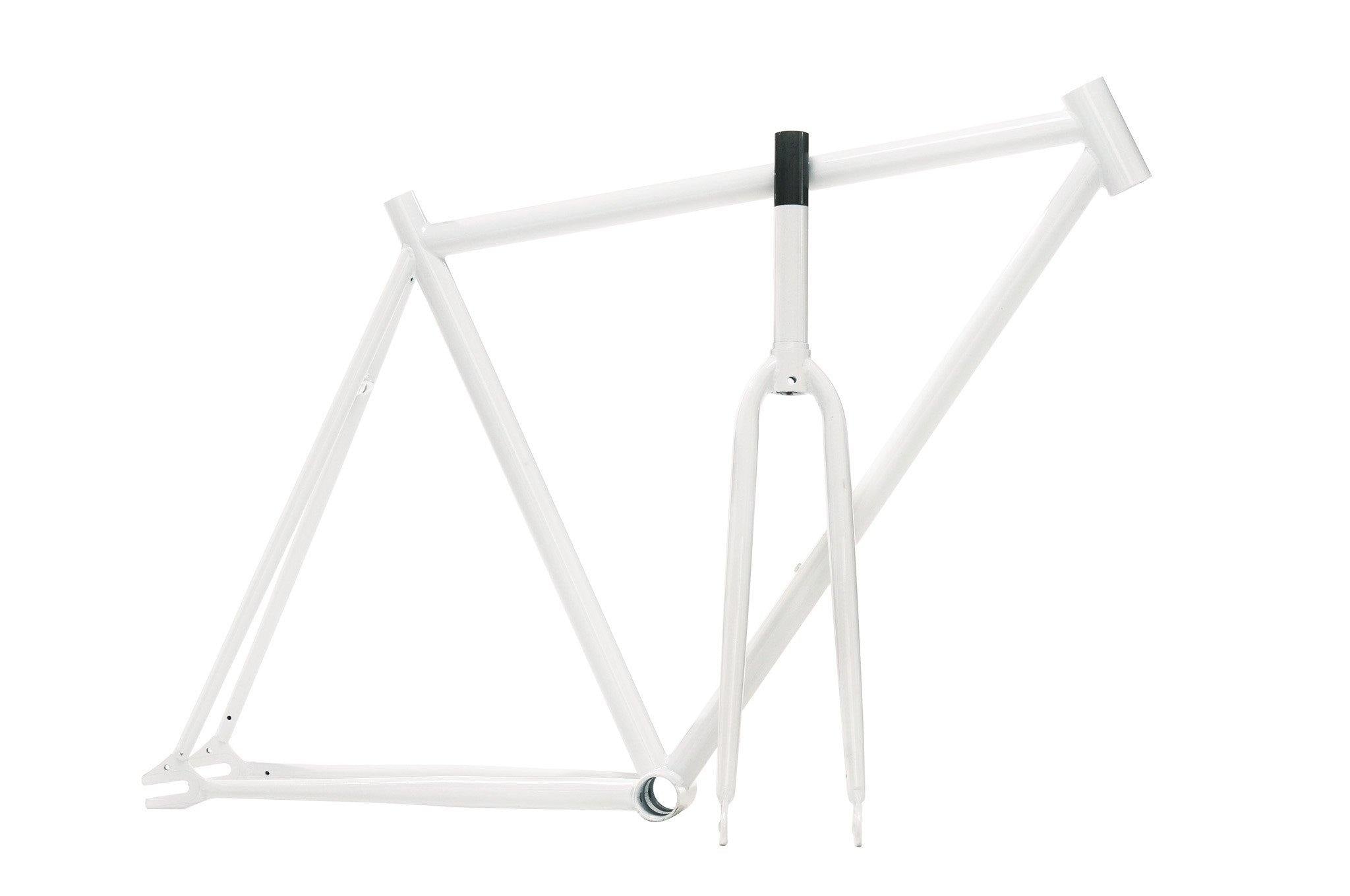 Our Original Fixed-Gear Frameset is a track inspired frame designed to throw down speed on the streets. Made of durable steel that absorbs road shock and gives you a classic feeling ride, the set includes a matching frame, fork and endless potential for customization!